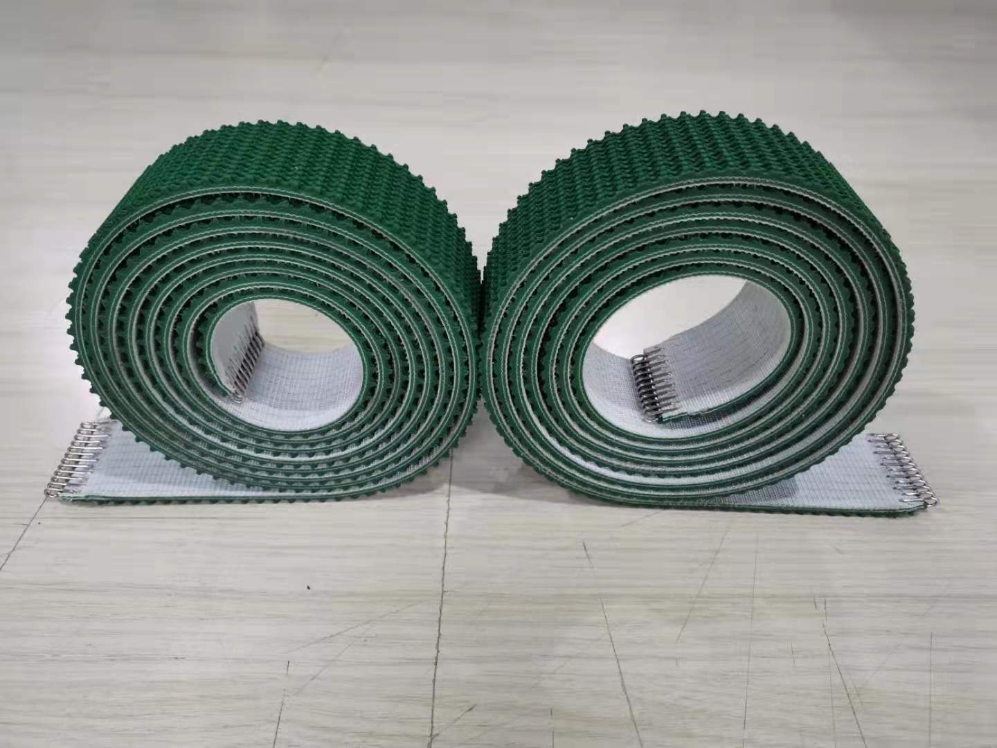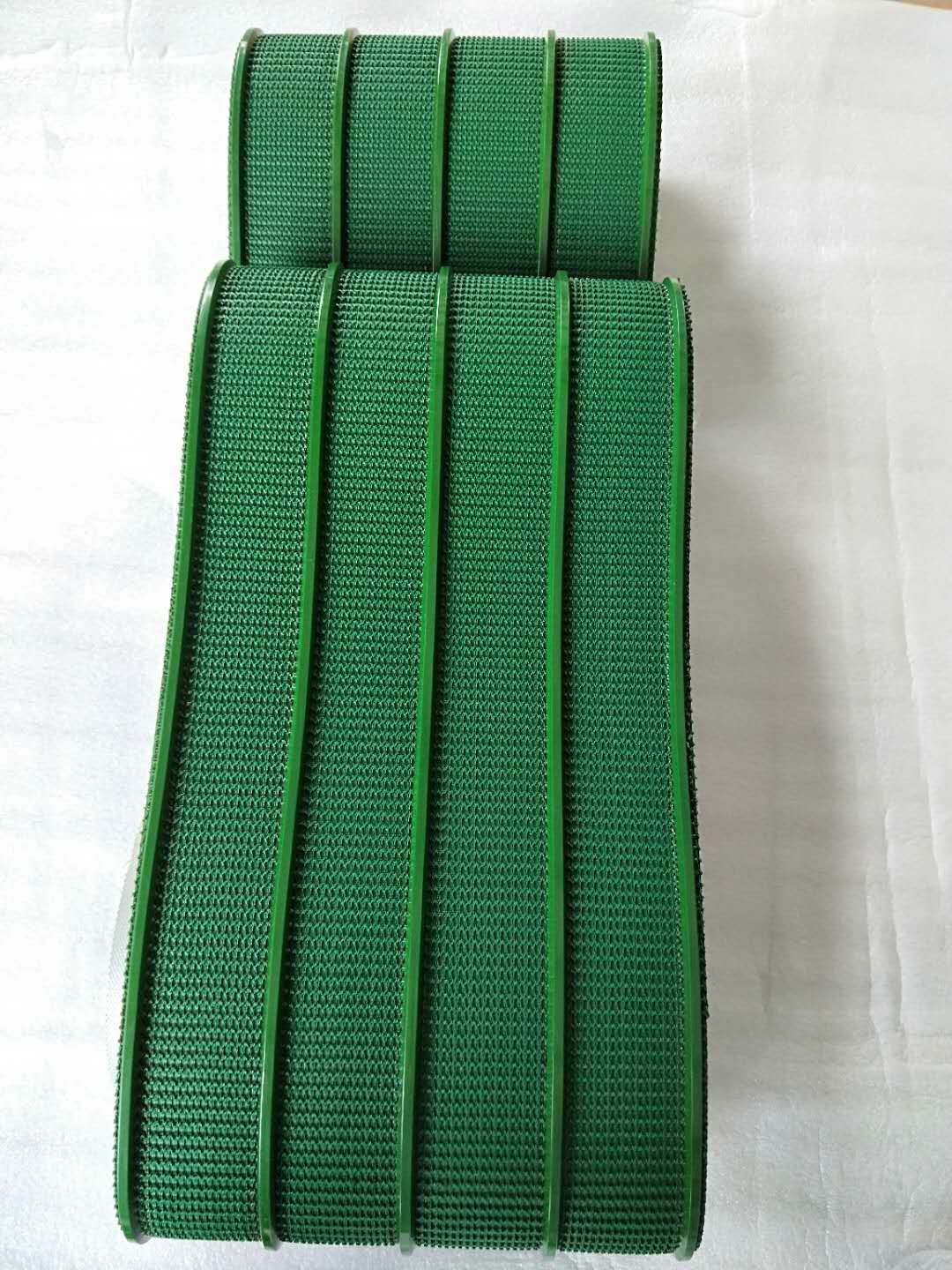 PVC | 1.0MM | 一布一膠 | 綠色/白色 | 5 | 25 | 1.輸送帶表面有各種花紋,規(guī)格參考花紋明細。 2.輸送帶表面可做特殊加工,如裙邊,擋板,鋼扣,加橡膠,海綿,導(dǎo)向條等其它材料,請參考加工說明。 3.輸送帶常規(guī)顏色為綠色、白色、黑色、藍色、墨綠色,如需其它顏色可定做,請來電溝通訂做。 |