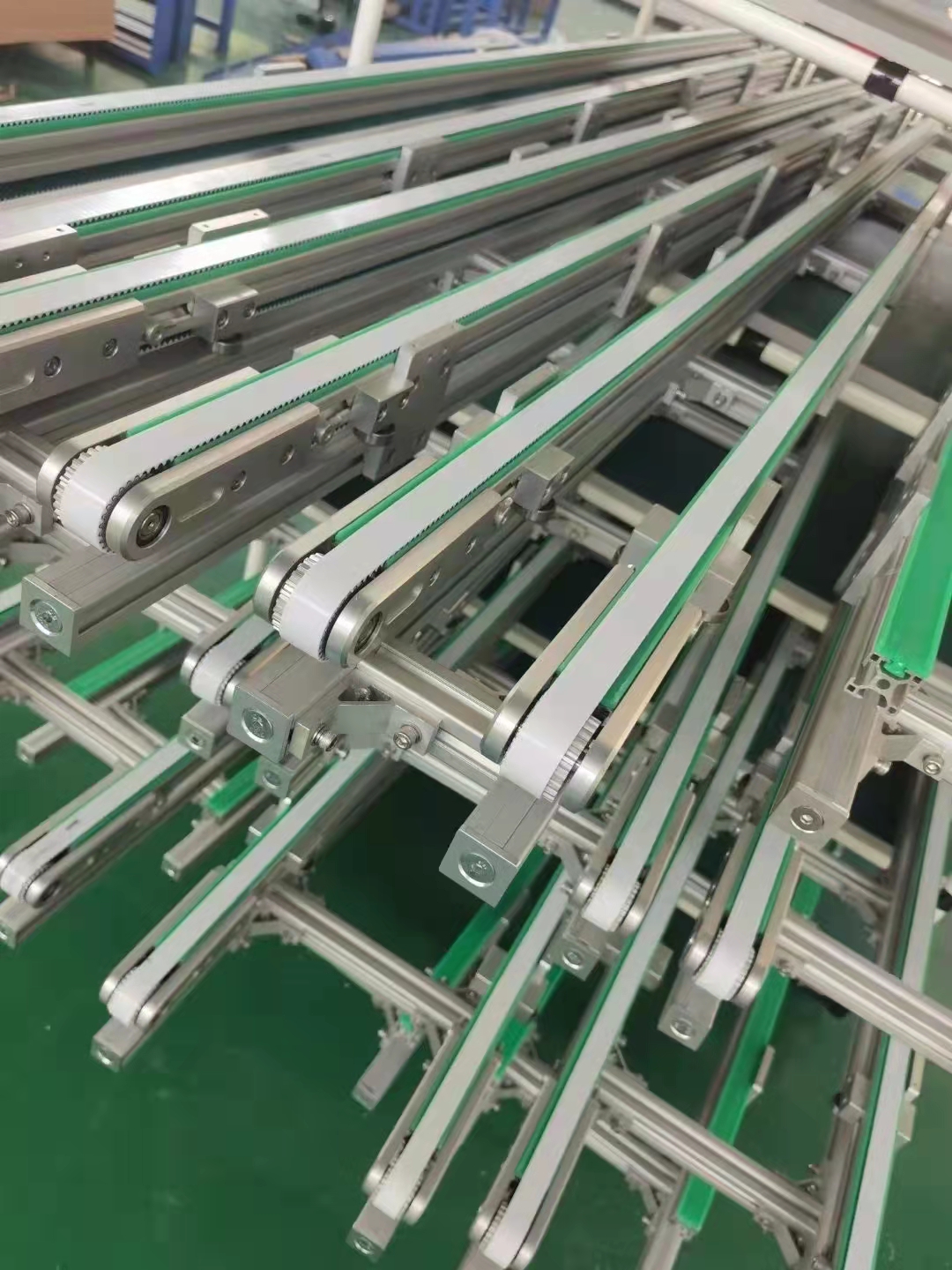 同步帶傳動是由一根內(nèi)周表面設(shè)有等間距齒的封閉環(huán)形膠帶和相應的帶輪所組成。運動時,帶齒與帶輪的齒槽相嚙合傳遞運動和動力,是一種嚙合傳動,因而具有齒輪傳動、鏈傳動和平帶傳動的各種優(yōu)點 。同步帶傳動具有準確的傳動比,無滑差,可獲得恒定的速比,可精密傳動,傳動平穩(wěn),能吸震,噪音小,傳動速比范圍大,一般可達1:10,允許線速度可達50m/s,傳動效率高,一般可達98%-99%。傳遞功率從幾瓦到數(shù)百千瓦。結(jié)構(gòu)緊湊還適用多軸傳動,張緊力小,不需潤滑,無污染,因而可在不允許有污染和工作環(huán)境較為惡劣的場合下正常工作。