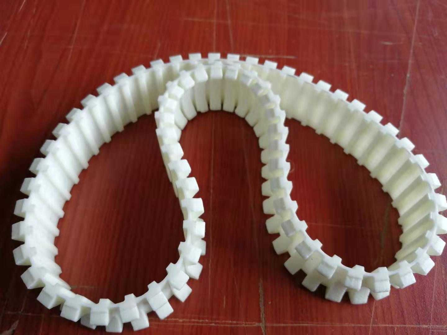 聚氨酯PU同步帶由進(jìn)口熱塑聚氨酯材料制成,具有較高抗磨損能力,各種類型鋼絲芯保證其在傳動(dòng)中仍然保持良好的運(yùn)動(dòng)能力,生產(chǎn)公差小。生產(chǎn)過程中在齒面和/或齒背加以一層尼龍以保證在特殊應(yīng)用中的運(yùn)行特殊性不變,還可在皮帶背面加厚一層聚氨酯以防止腐蝕或高負(fù)載。