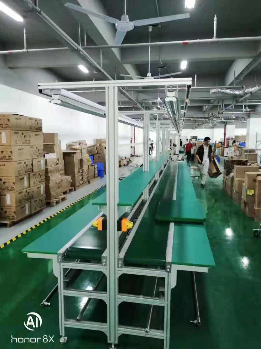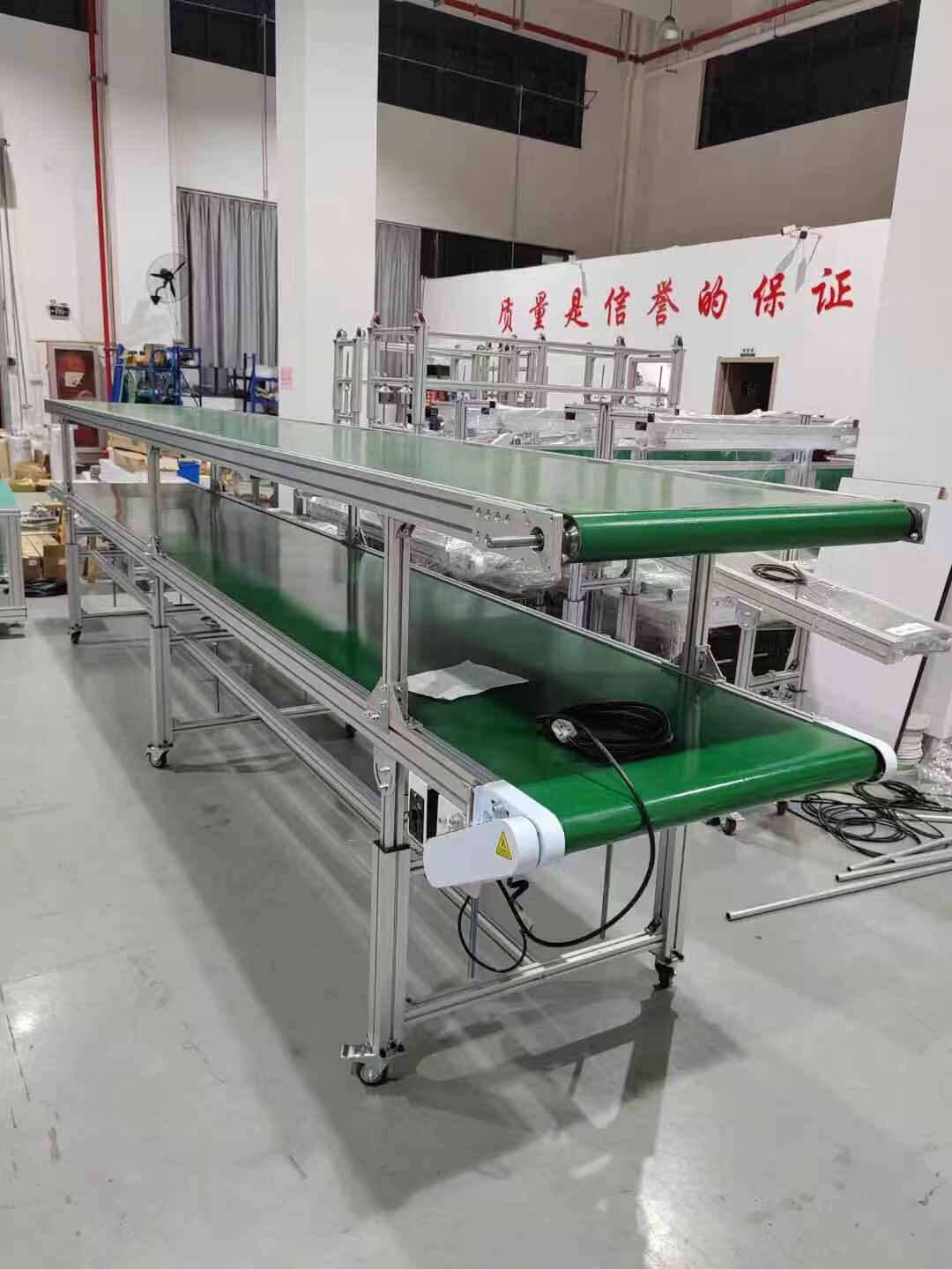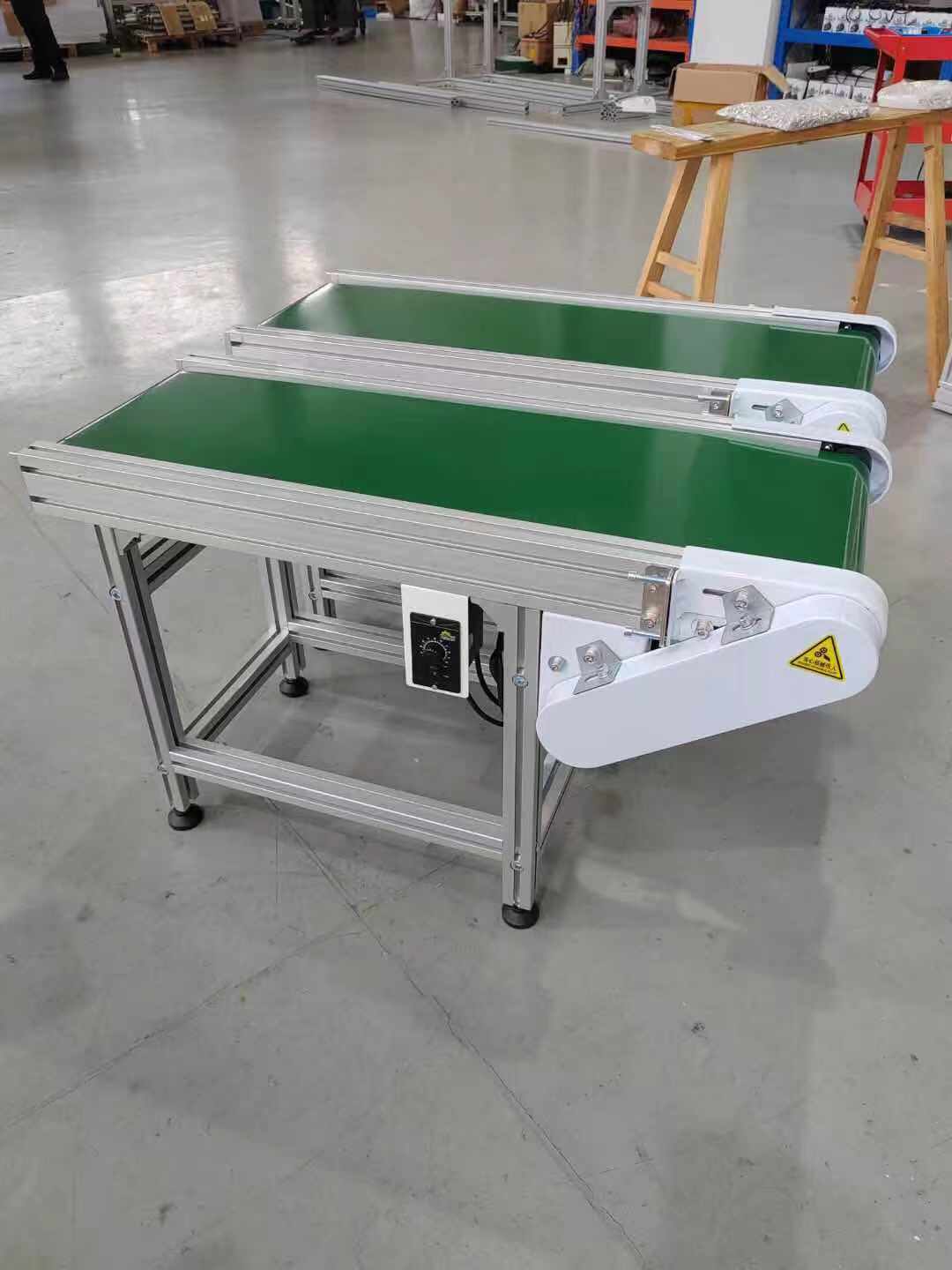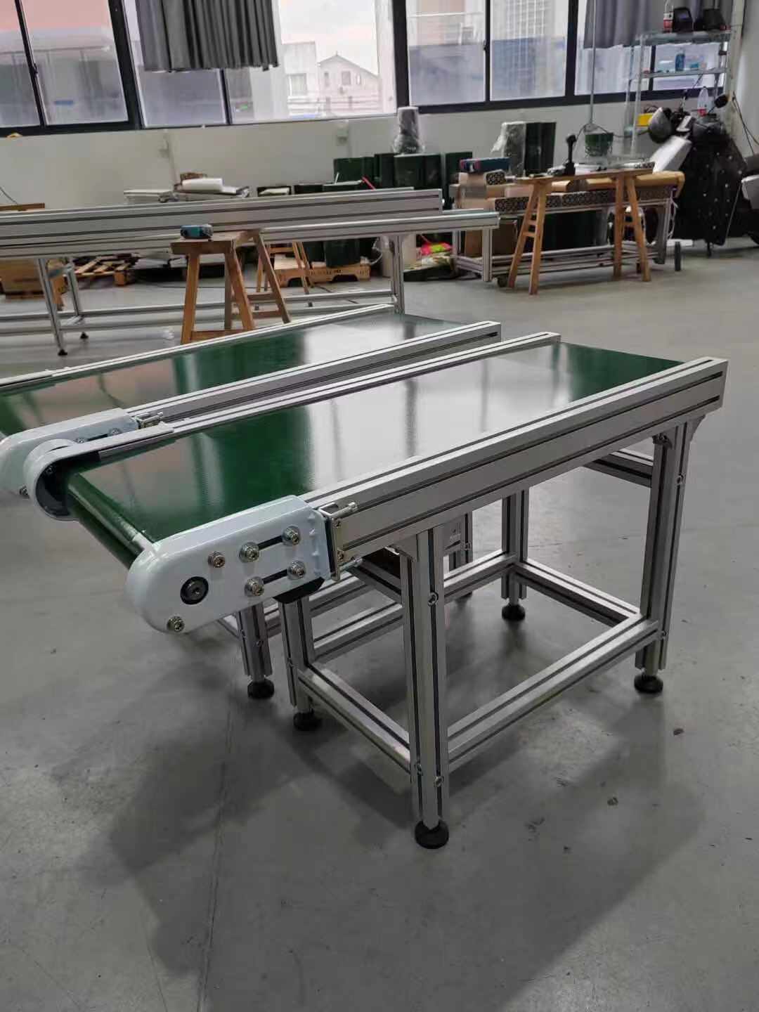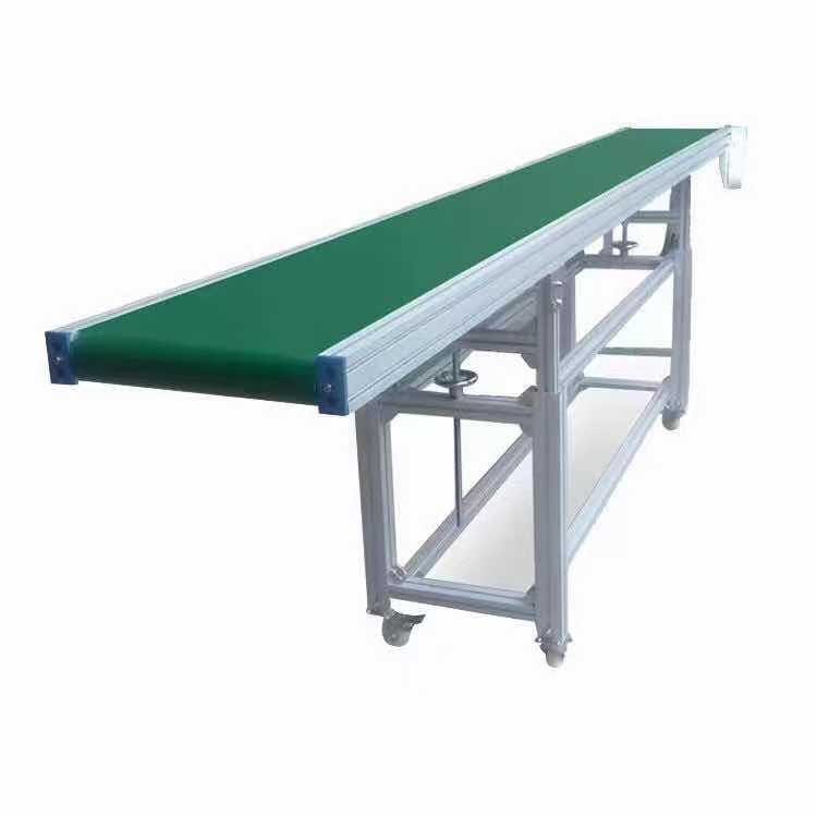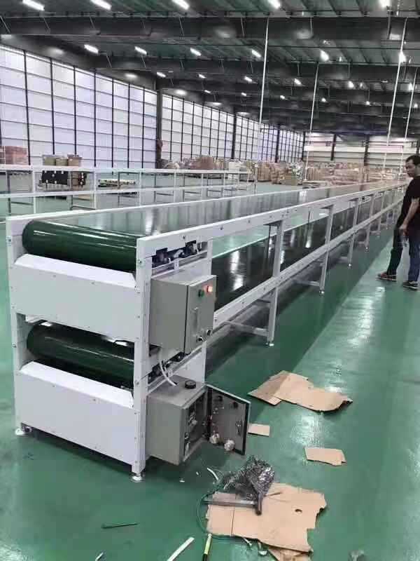 皮帶線可輸送的物料種類繁多,既可輸送各種散料,也可輸送各種紙箱、包裝袋等單件重量不大的件貨,用途廣泛。結構形式多樣,有槽型皮帶機、平型皮帶機、爬坡皮帶機、側傾皮帶線、轉彎皮帶線等多種形式,輸送帶上還可増推板、側擋板、裙邊等附件、能滿足各種工藝要求。