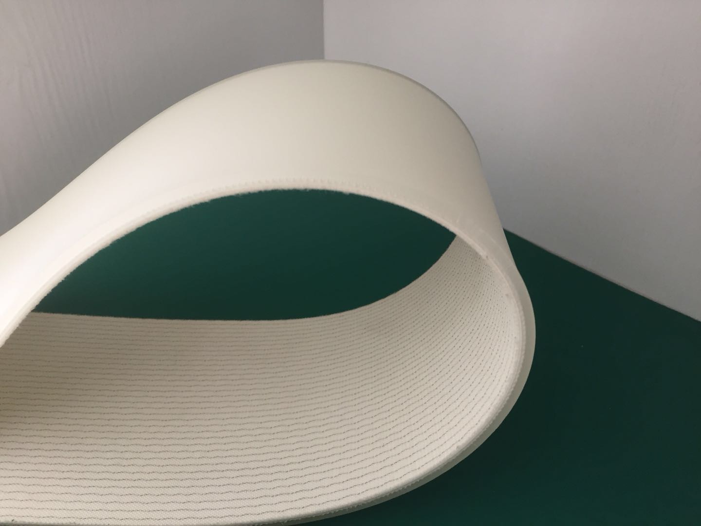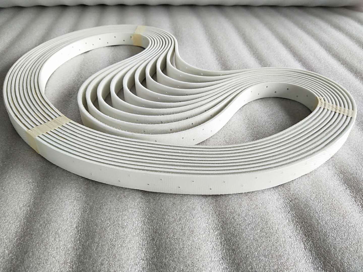 產(chǎn)品介紹: 產(chǎn)品制作: 將紗線整經(jīng)穿棕,編織成無(wú)縫環(huán)帶;所述的紗線為高強(qiáng)低伸滌綸紗、對(duì)位芳綸紗或玻璃纖維紗;(2)將含水質(zhì)量百分比低于0.1%熱塑性聚氨酯彈性體橡膠刮涂于所述的無(wú)縫環(huán)帶。助卷皮帶特性: 助卷機(jī)帶100%的聚酯織物層,使皮帶具有良好的抗壓力和拉張力,不會(huì)斷裂; 助卷機(jī)帶- 強(qiáng)力層為完全無(wú)縫編織,厚度均勻,柔順,尺寸精確; 助卷機(jī)帶- 具有良好的抗油性,可抗多